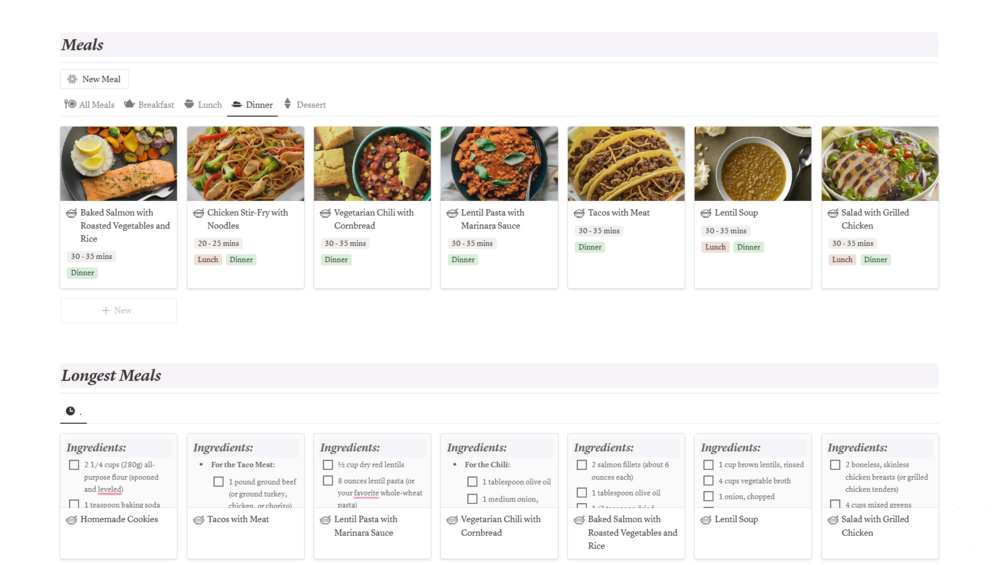 Imagine this: Sunday morning, a steaming cup of coffee in hand, you effortlessly plan your week's meals with this Notion template. No more scrambling through cabinets or forgetting key ingredients. Drag and drop meals from breakfast burritos to comforting pasta nights, and watch your grocery list populate magically. With your pantry organized and recipes at your fingertips, you're ready to conquer the week, one delicious, stress-free meal at a time.✨